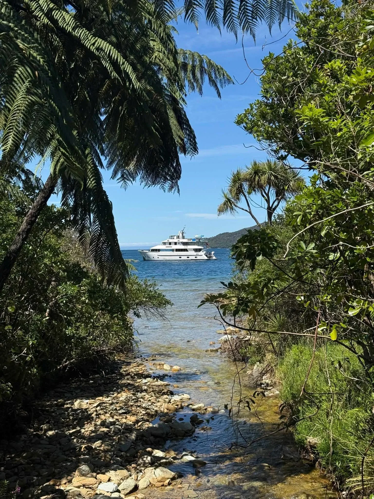 One of the first land-based explorations was to Ship Cove, where James Cook first came ashore in 1770 aboard the HMS Endeavour. The well-maintained tracks wind through native bush canopies with sweeping ridgeline views over the Sounds, a landscape steeped in history and natural beauty.