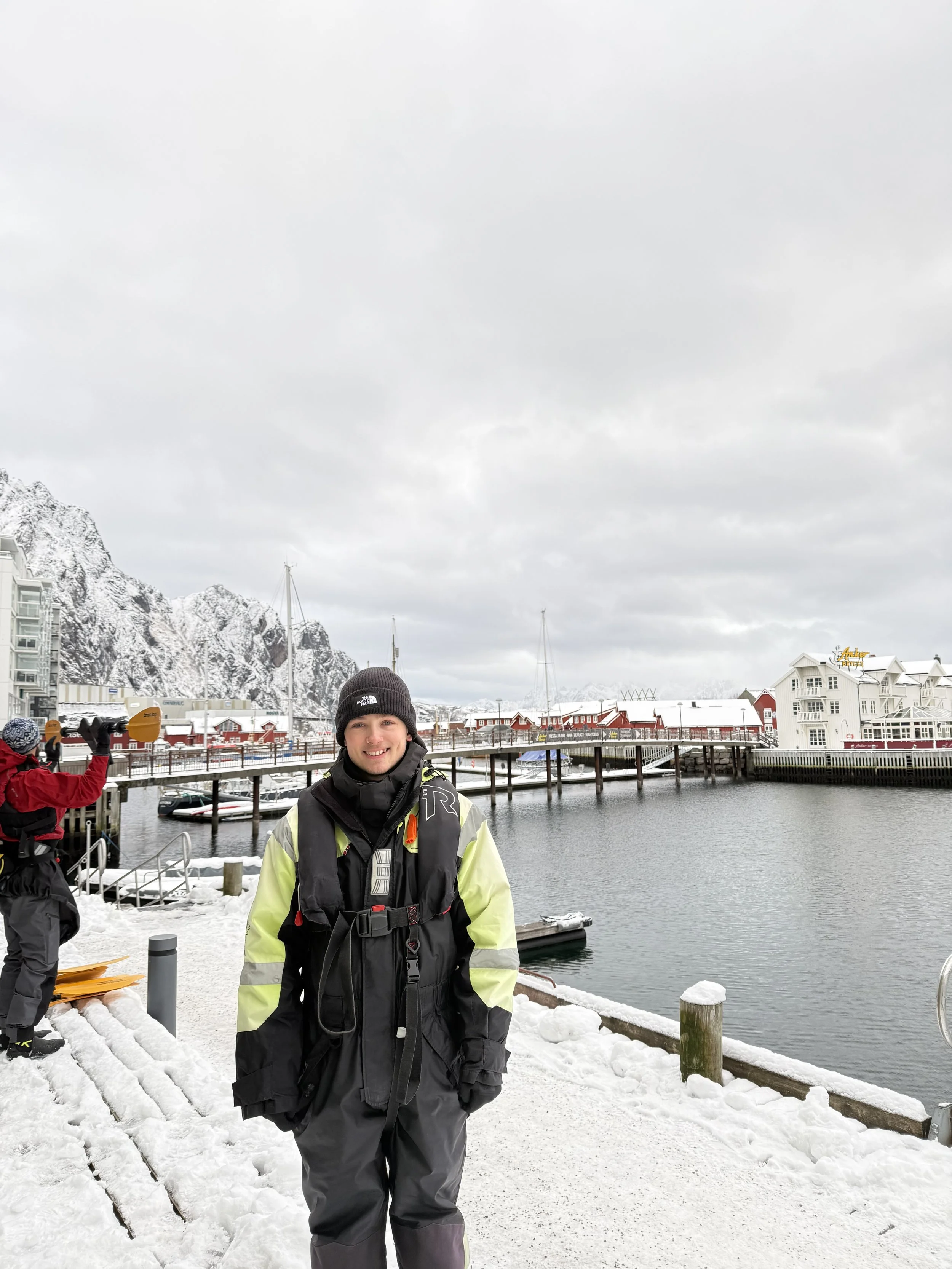 Crossing into the Arctic brought a noticeable shift in the landscape, fjords edged with frost, mountains dusted in fresh snow, and a crisp stillness in the air that instantly set the tone for the day. The ship arrived early into Svolvær, one of the most picturesque towns in the Lofoten Islands, and the morning began with free time to wander.