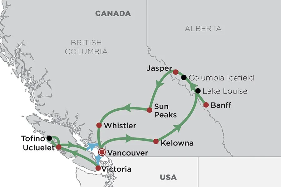 Kelowna • Banff • Jasper • Whistler • Pacific Rim National Park • Tofino • Victoria