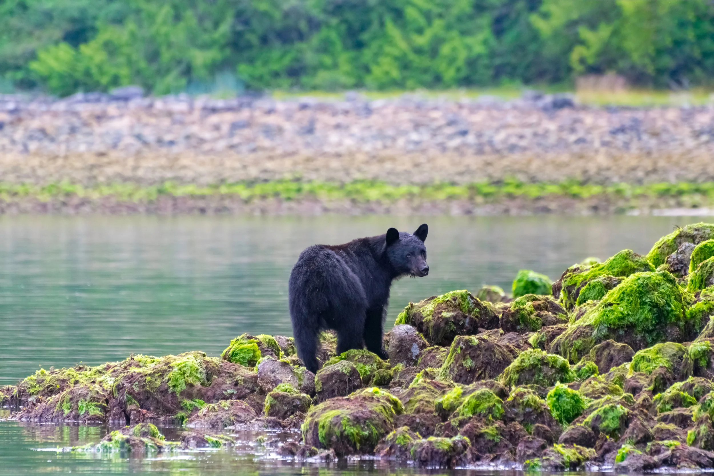 Search for foraging bears from the comfort of a 24’ Zodiac vessel. Abundant on the West Coast, black bears roam the shores at low tide in search of their favorite delicacy, the Rock Crab.