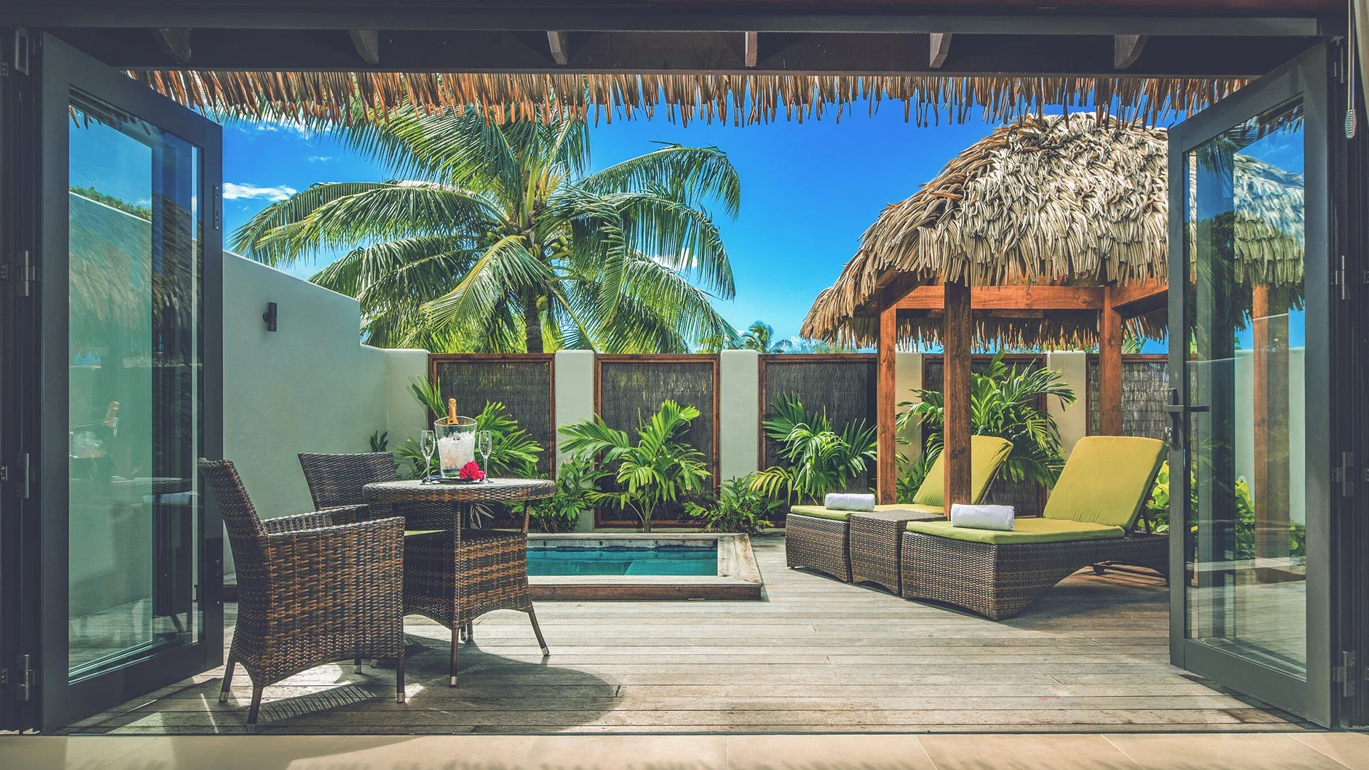 7 nights from $2,159 per person share twin in an Ocean View Villa including return airport transfers, breakfast hamper on arrival and replenished every 3rd day, complimentary bottle of wine upon check in and Wi-Fi. Upgrade to an Ocean Front Villa from $1,049 per person.